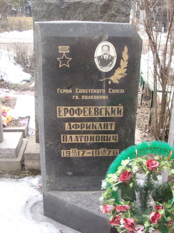 Ерофеевский Африкант Платонович – командир эскадрильи 717-го бомбардировочного авиационного полка 242-й ночной бомбардировочной авиационной дивизии 6-й воздушной армии Северо-Западного фронта, майор.