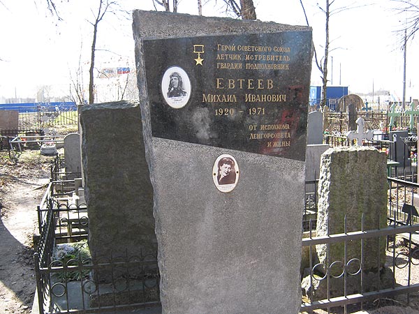 Не один десяток воздушных боёв провел Михаил Иванович Евтеев, защищая Ленинград. Он лично сбил 13 фашистских самолётов и 9 в группе со своими товарищами. За храбрость и мужество, за умение побеждать врага Президиум Верховного Совета СССР 28 сентября 1943 года присвоил Михаилу Ивановичу Евтееву звание Героя Советского Союза.