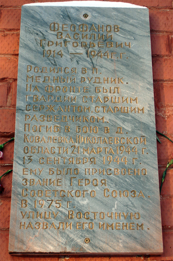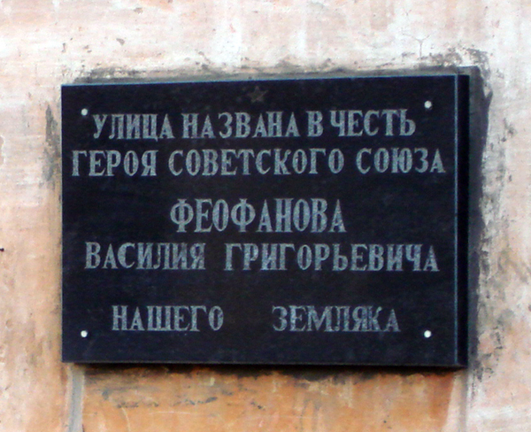Феофанов Василий Григорьевич – старший разведчик 3-го дивизиона 172-го гвардейского артиллерийского полка (79-я гвардейская Запорожская Краснознаменная стрелковая дивизия, 28-й гвардейский стрелковый корпус, 8-я гвардейская армия, 3-й Украинский фронт), гвардии старший сержант.