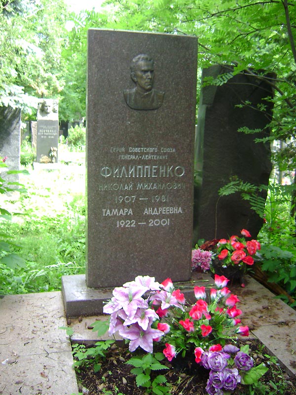 С 1962 года генерал-лейтенант танковых войск Н.М. Филиппенко – в запасе. Жил в городе-герое Москве. Скончался 19 сентября 1981 года. Похоронен в Москве на Кунцевском кладбище (учаток 9-3).