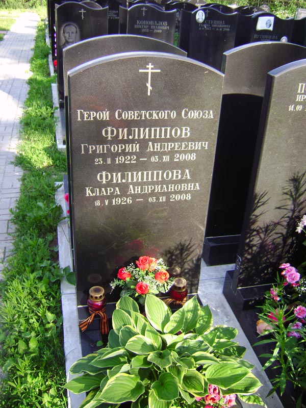 Указом Президиума Верховного Совета СССР от 24 марта 1945 года за образцовое выполнение заданий командования и проявленные мужество и героизм в боях с немецко-фашистскими захватчиками сержанту Филиппову Григорию Андреевичу присвоено звание Героя Советского Союза с вручением ордена Ленина и медали "Золотая Звезда" (№ 7414).