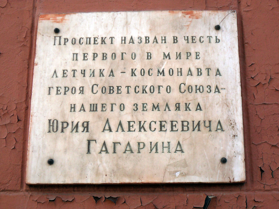 В целях увековечения памяти Ю.А. Гагарина в 1968 году город Гжатск Смоленской области был переименован в город Гагарин. Имя Гагарина присвоено Военно-воздушной академии в 1968 году. Учреждена стипендия имени Ю.А. Гагарина для курсантов военных авиационных училищ. Учреждена медаль имени Ю.А. Гагарина (FAI). Имя Гагарина носят Центр подготовки космонавтов, научно-исследовательское судно, астероид № 1772 (6.02.1968), кратер на обратной стороне Луны, авиационное производственное объединение (город Комсомольск-на-Амуре), учебные заведения, улицы и площади многих городов мира. В Москве, Чебоксарах, Гагарине, Звёздном городке, Люберцах, Лондоне и других городах установлены памятники первому космонавту. У деревни Смеловки, на месте приземления первого космонавта, установлен памятный знак. В городе Гагарине открыт мемориальный дом-музей Юрия Гагарина. В честь 50-летия полета первого человека в космос, в городе Екатеринбург на фасаде дома по улице Гагарина,12 установлена мемориальная доска.