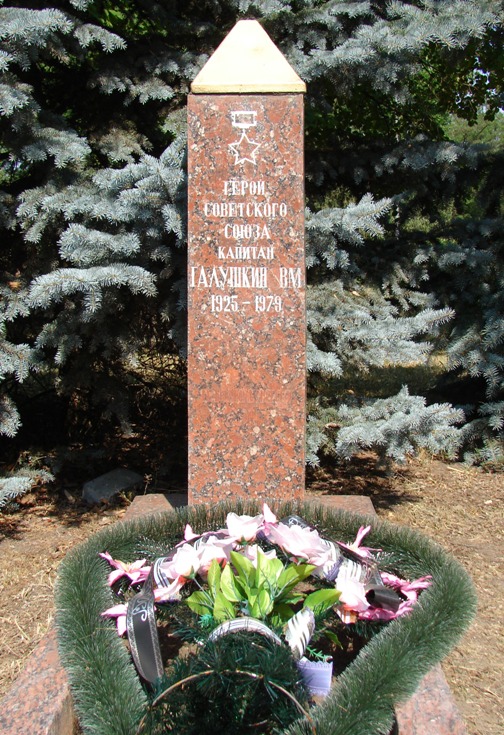 26 сентября 1943 года гвардии красноармеец Галушкин В.М. пленил вражеского пулемётчика и доставил его в штаб 212-го гвардейского стрелкового полка.