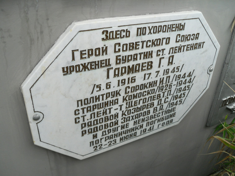 Зимой 1940 года во время советско-финляндской войны, оказавшись в окружении, красноармеец Гармажап Гармаев вёл меткий пулёметный огонь. Нанеся урон противнику, вырвался из окружения. Вынес тяжелораненого командира.