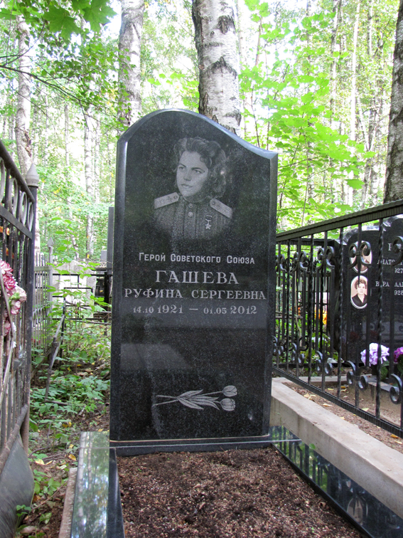 Гашева Руфина Сергеевна – штурман авиаэскадрильи 46-го гвардейского ночного бомбардировочного авиационного полка (325-я ночная бомбардировочная авиационная дивизия, 4-я воздушная армия, 2-й Белорусский фронт), гвардии старший лейтенант.
