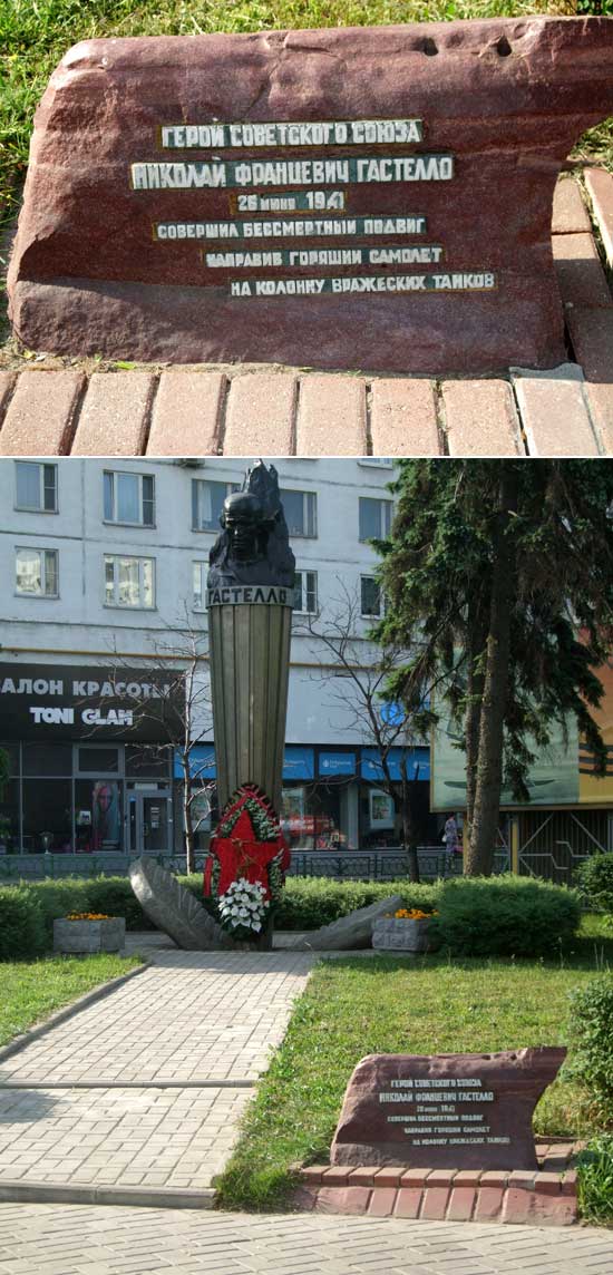 26 июня 1941 года при выполнении очередного полёта на боевое задание, его бомбардировщик ДБ-3Ф был подбит и загорелся. Капитан Гастелло Н.Ф. направил горящий самолёт на скопление вражеских войск в районе деревни Радошковичи на автомобильной дороге Молодечно-Радошковичи...