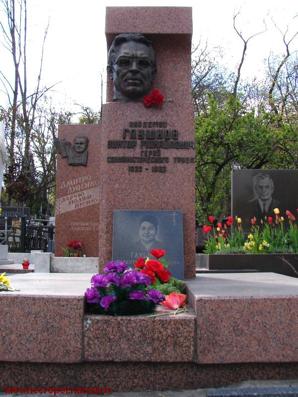 Установлен на Байковом кладбище в Киеве. Фото Игоря Сердюкова (сайт «Некрополи Киева» (http://kiev-necropol.narod.ru/)), 2008.