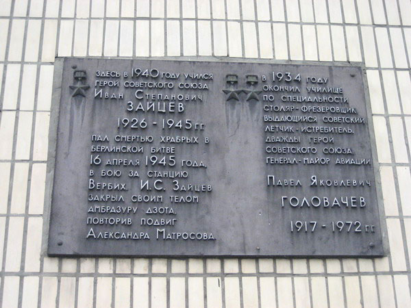 В городе Гомель на здании СПТУ-56 (ныне Гомельский государственный профессиональный строительный колледж имени П.Я.Головачева). Фото Владимира Примаченко.