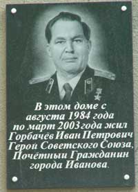 24 марта 2005 года в городе Иваново на улице Пушкина, дом 33, где Горбачёв провел последние годы жизни, открыта мемориальная доска.