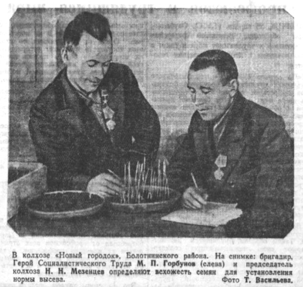 Горбунов Матвей Прокопьевич – бригадир колхоза «Новый городок» Болотнинского района Новосибирской области.
