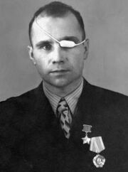 Отличился в боях при форсировании Дуная. Несколько раз был ранен, потерял левый глаз.