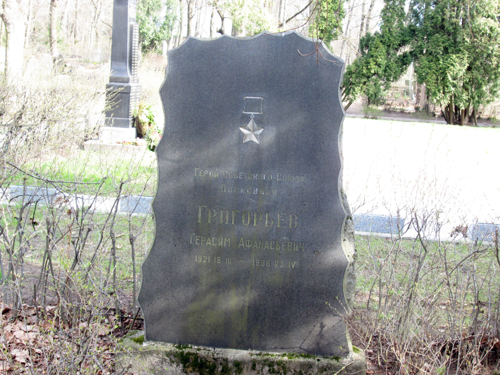 Указом Президиума Верховного Совета СССР от 14 февраля 1943 года за образцовое выполнение боевых заданий командования на фронте борьбы с немецко-фашистским захватчиками и проявленные при этом мужество и героизм капитану Григорьеву Герасиму Афанасьевичу присвоено звание Героя Советского Союза с вручением ордена Ленина и медали "Золотая Звезда" (№ 791).