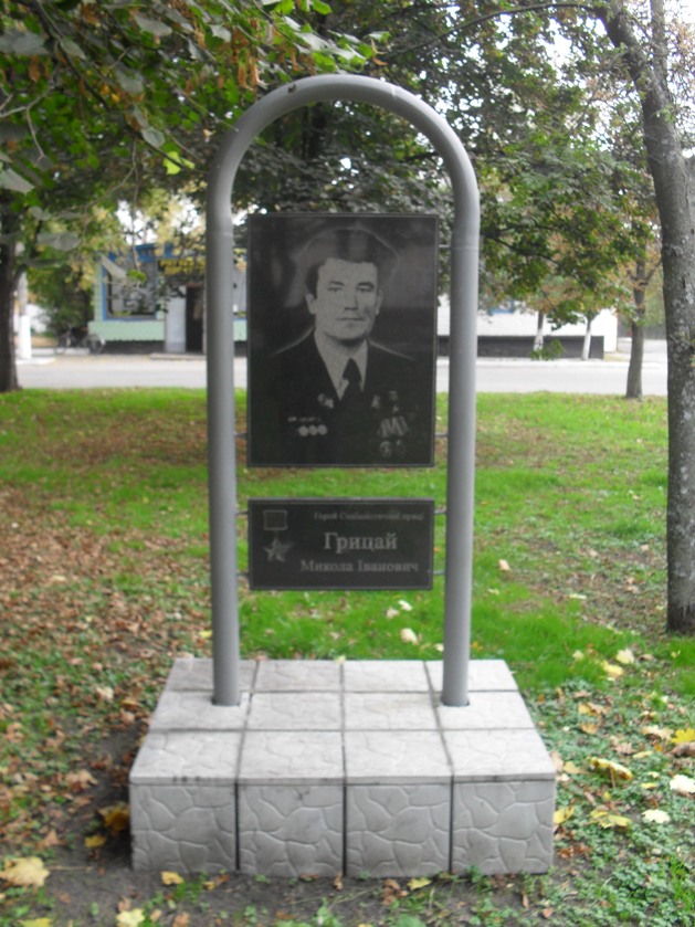 в музее села Жовтневое, расположенном в сельской школе, оборудован стенд с материалами о Н.И.Грицае. В поселке городского типа Короп на Аллее Героев установлен памятный знак Н.И.Грицаю.