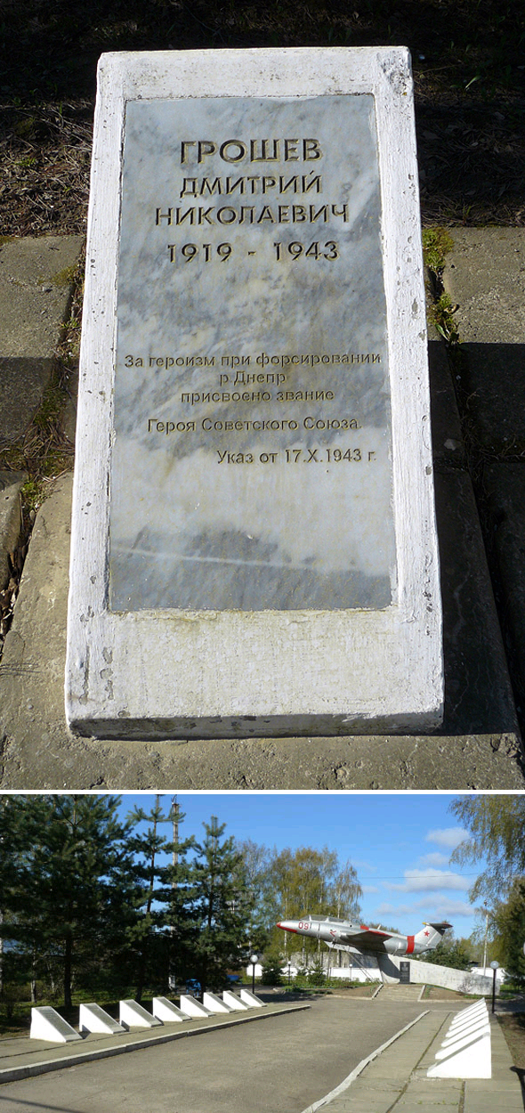 Указом Президиума Верховного Совета СССР от 17 октября 1943 года за мужество и героизм, проявленные при форсировании Днепра и в боях за расширение плацдарма, гвардии младшему сержанту Грошеву Дмитрию Николаевичу посмертно присвоено звание Героя Советского Союза.