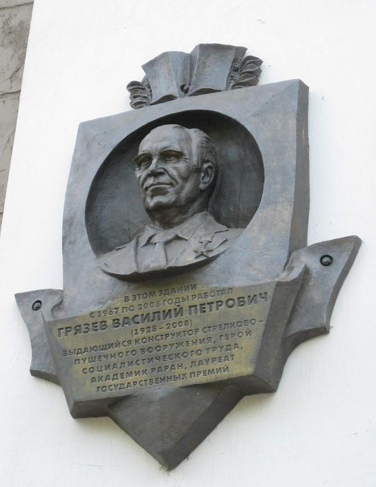 Грязев Василий Петрович – выдающийся российский советский конструктор автоматического артиллерийского и стрелкового вооружения, заместитель начальника и главного конструктора предприятия «Конструкторское бюро приборостроения» Министерства оборонной промышленности СССР (город Тула), доктор технических наук, профессор.