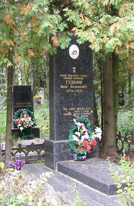 …Тяжёлые ранения пошатнули здоровье Героя; И.В. Гудимов демобилизовался из армии, жил в Чернигове, активно участвуя в военно-патриотическом воспитании молодёжи.