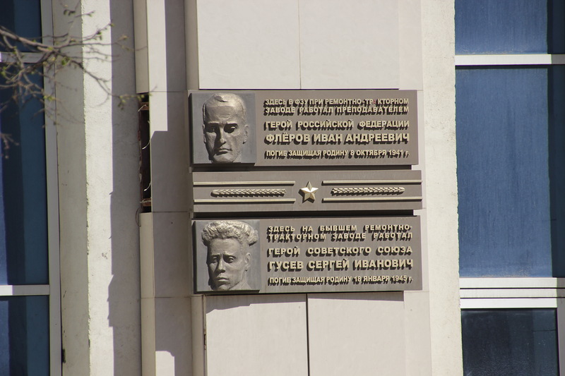 Памятная доска с этим текстом и с барельефом Героя установлена на фасаде главного здания станции Гусев. Памятная доска появилась на станции ещё в 1960-х годах. А новый, выполненный в металле, барельеф Героя изготовлен к 60-летию Победы.