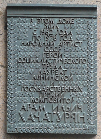 Памятник Араму Хачатуряну в Москве (Брюсов переулок, 8/10). Открыт 31.10.2006 года. Скульптор Г.Франгулян, архитектор И.Воскресенский.