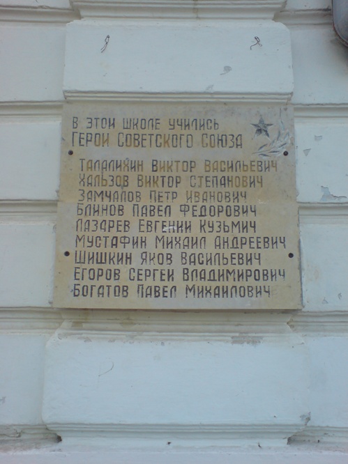 Мемориальная доска установлена на памятной стеле напротив здания средней школы № 1 в городе Вольск Саратовской области, а также на здании самой школы.