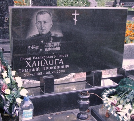 Указом Президиума Верховного Совета СССР от 19 марта 1944 года за мужество и героизм, проявленные при форсировании Днепра и удержании плацдарма, капитану Хандоге Тимофею Прокофьевичу присвоено звание Героя Советского Союза с вручением ордена Ленина и медали «Золотая Звезда» (№1943).