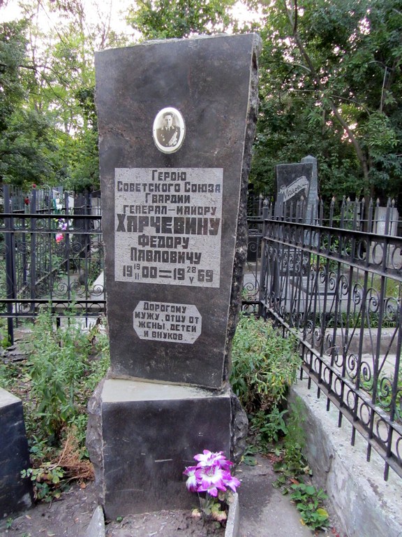 За успешное форсирование Днепра войсками армии и личное мужество Указом Президиума Верховного Совета СССР от 17 ноября 1943 г. Фёдору Павловичу Харчевину присвоено звание Героя Советского Союза».
