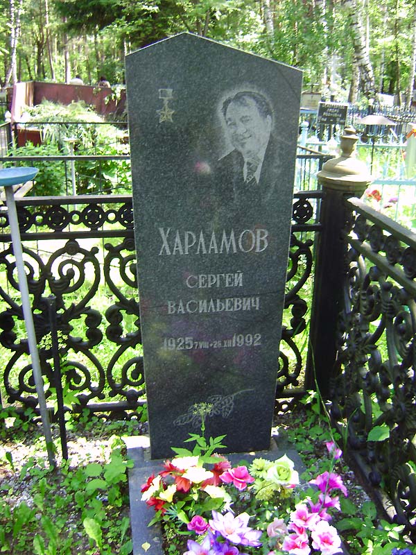 До 25-летия освобождения Украины от немецко-фашистских захватчиков значилась на обелиске ещё шестая фамилия Героя — гвардии ефрейтора С.В. Харламова. Но к общей радости, он оказался живым. Истину установили энтузиасты неустанного поиска. Тогда же сделали приятную поправку на обелиске. С.В. Харламов в числе многих дорогих гостей прибыл на торжество в Чернигов из Подмосковного совхоза "Озёры". Сергей Васильевич побывал на Днепре, на том самом месте, где он осенью 1943 года, после форсирования широкой реки, дрался с фашистами на плацдарме и, как считалось четверть века после войны, погиб и похоронен в братской могиле в Любече.