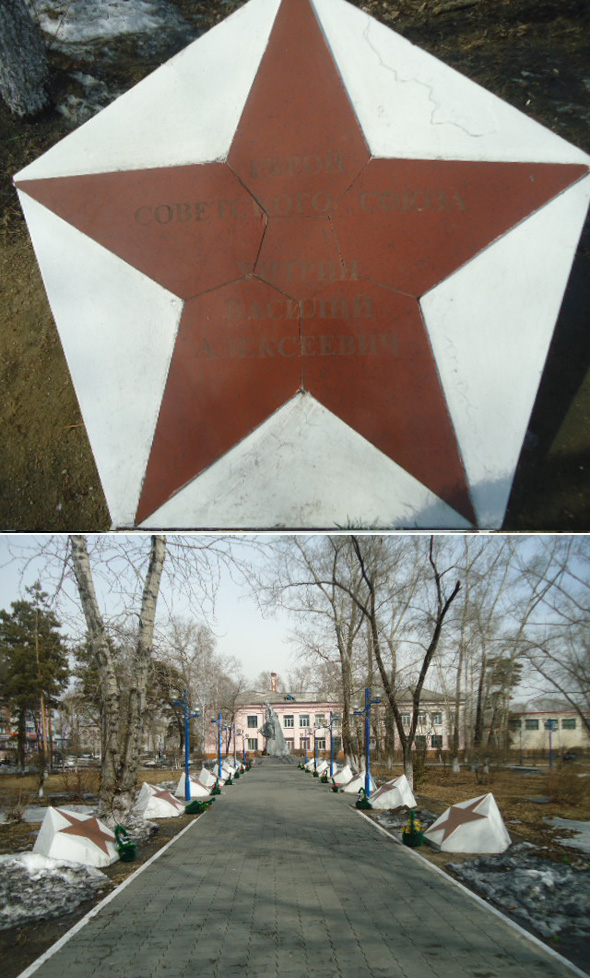 На здании сельсовета установлена мемориальная доска. Имя Героя носит Макарьевская средняя школа. В городе Белогорск Амурской области установлен памятный знак в виде звезды на Аллее Славы.