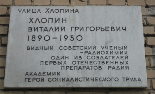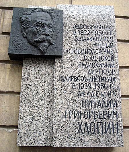 Хлопин Виталий Григорьевич – ученый-физик, директор Радиевого института Академии наук СССР, председатель специального комитета по урановой проблеме при Президиуме АН СССР, академик АН СССР.
