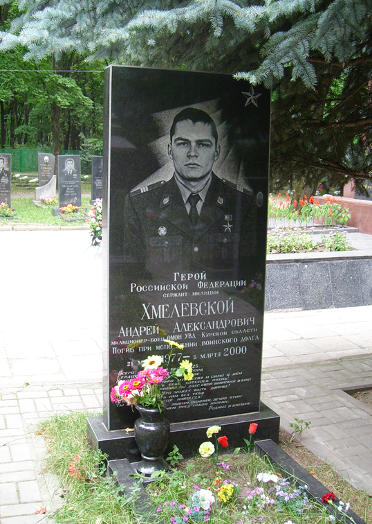 Хмелевской Андрей Александрович - боец отряда милиции особого назначения (ОМОН) при Управлении внутренних дел (УВД) Курской области, старший сержант милиции.