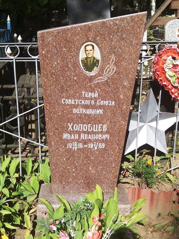 Указом Президиума Верховного Совета СССР от 10 апреля 1945 года за умелое командование полком, образцовое выполнение боевых заданий командования на фронте борьбы с немецко-фашистским захватчиками и проявленные при этом мужество и героизм гвардии подполковнику Холобцеву Ивану Ивановичу присвоено звание Героя Советского Союза с вручением ордена Ленина и медали «Золотая Звезда» (№ 7563).