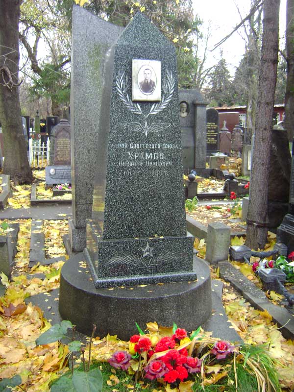Военный летчик 1-го класса полковник Н.И.Храмов погиб 18 октября 1950 года при исполнении служебных обязанностей. Похоронен в Москве на Новодевичьем кладбище (участок 4). В Харькове его именем названы улица и школа, установлена мемориальная доска.
