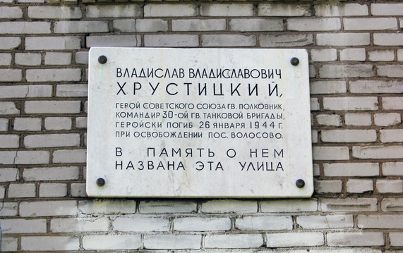 Указом Президиума Верховного Совета СССР от 21 февраля 1944 года за отличное выполнение боевых заданий командования и проявленные при этом мужество и отвагу командиру 30-й отдельной гвардейской танковой бригады Ленинградского фронта гвардии полковнику Хрустицкому Владиславу Владиславовичу посмертно присвоено звание Героя Советского Союза.