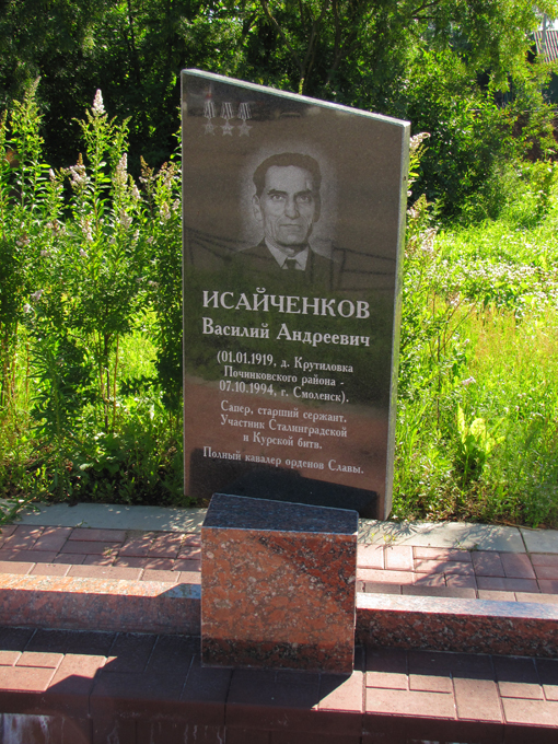 На Аллее Героев в городе Починок установлен памятный знак В.А.Исайченкову.
