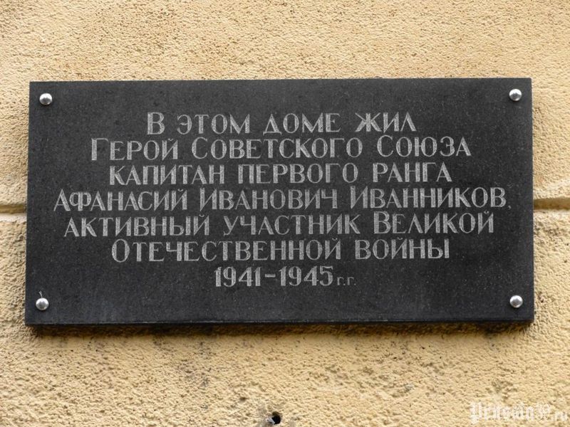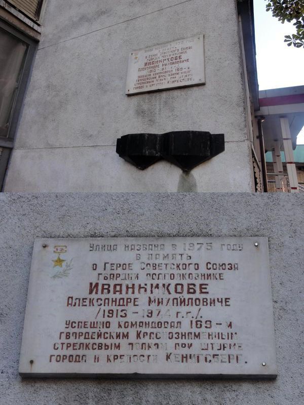 Мемориальная доска установлена в Калининграде на доме, в котором жил Герой.