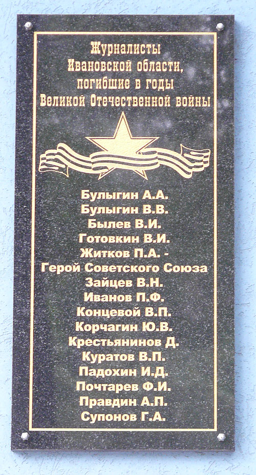 В городе Иванове имя Героя увековечено на памятниках ученикам школы №38 и рабочим фабрики "Красная Талка", на мемориальной доске погибшим ивановским журналистам. Его именем названа улица, установлен памятный знак. В селе Хотов и на здании фабрики в Иваново, где он работал, установлены мемориальные доски.