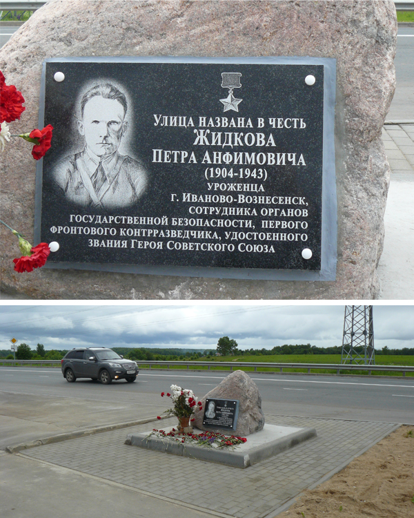 Жидков Петр Анфимович - оперуполномоченный отделения контрразведки "СМЕРШ" мотострелкового батальона 71-й механизированной бригады 9-го механизированного корпуса 3-й гвардейской танковой армии 1-го Украинского фронта, старший лейтенант.