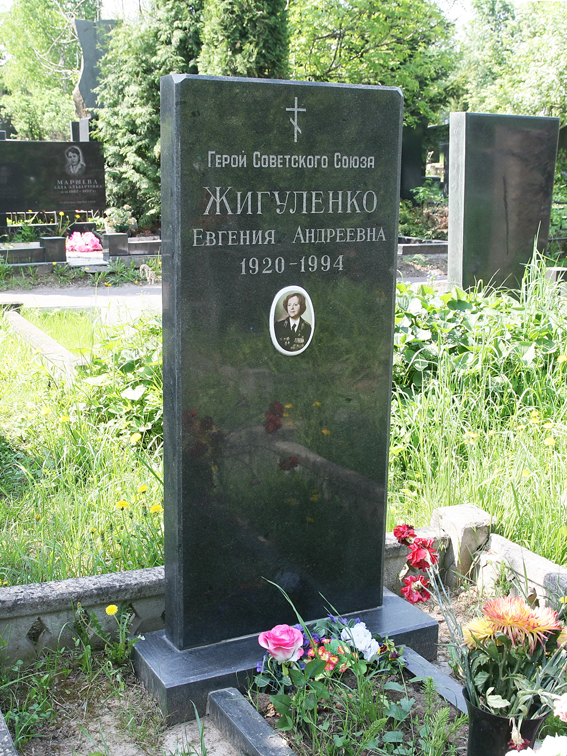 Жигуленко Евгения Андреевна – командир звена 46-го гвардейского ночного бомбардировочного авиационного полка (325-я ночная бомбардировочная авиационная дивизия, 4-я воздушная армия, 2-й Белорусский фронт), гвардии лейтенант.