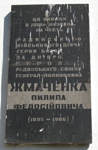 Указом Президиума Верховного Совета СССР от 25 октября 1943 года за форсирование Днепра и удержание плацдарма южнее Киева, командующему 47-й армией Воронежского фронта генерал-лейтенанту Жмаченко Филиппу Феодосьевичу присвоено звание Героя Советского Союза с вручением ордена Ленина и медали "Золотая Звезда".