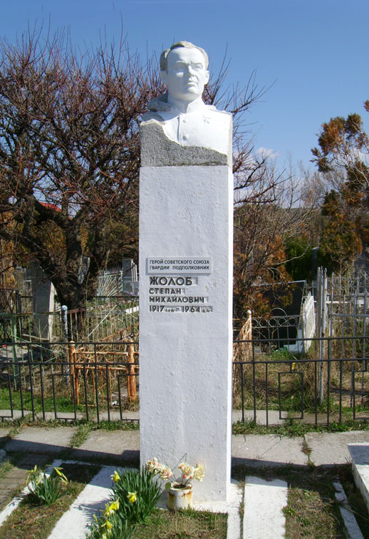Участник Великой Отечественной войны. После войны С.М. Жолоб окончил курсы при Военно-политической академии имени В.И. Ленина. С 1956 года подполковник Жолоб С.М. - в запасе. Умер 6 мая 1964 года. Похоронен в городе Анапа Краснодарского края, на Старом кладбище.