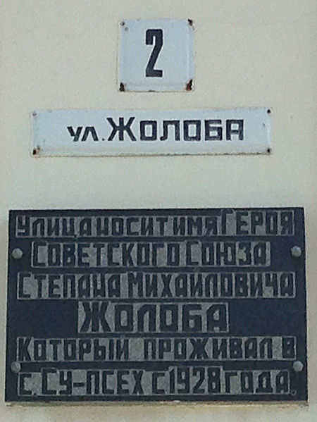 Указом Президиума Верховного Совета СССР от 11 апреля 1940 года «за образцовое выполнение боевых заданий командования на фронте борьбы с финской белогвардейщиной и проявленные при этом отвагу и геройство» младшему политруку Жолобу Степану Михайловичу присвоено звание Героя Советского Союза с вручением ордена Ленина и медали «Золотая Звезда» (№ 408). Первый из уроженцев Кубани, удостоенный звания "Герой Советского Союза