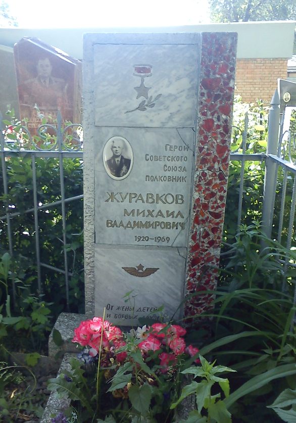 Журавков Михаил Владимирович - заместитель командира эскадрильи 13-го гвардейского Рославльского Краснознаменного авиационного полка дальнего действия 4-й гвардейской Брянской авиационной дивизии дальнего действия 4-го гвардейского Гомельского авиационного корпуса дальнего действия Авиации дальнего действия (АДД), гвардии майор.