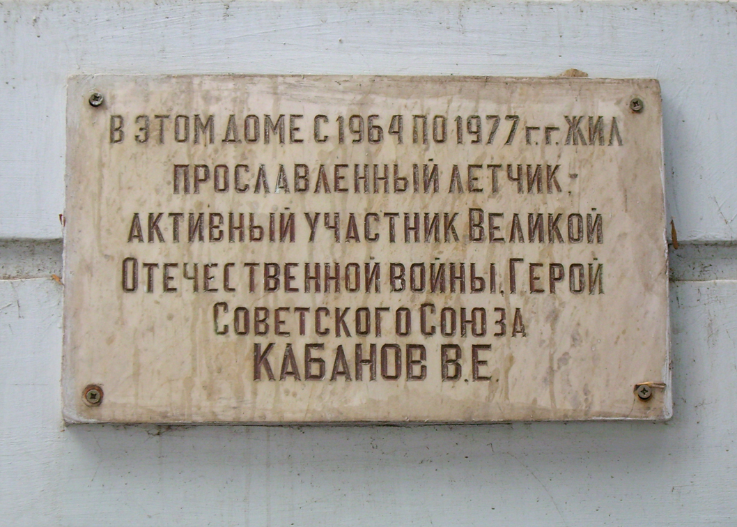 Кабанов Владимир Егорович – старший лётчик 7-го гвардейского штурмового авиационного полка (230-я штурмовая авиационная дивизия, 4-я воздушная армия, 2-й Белорусский фронт), гвардии лейтенант.