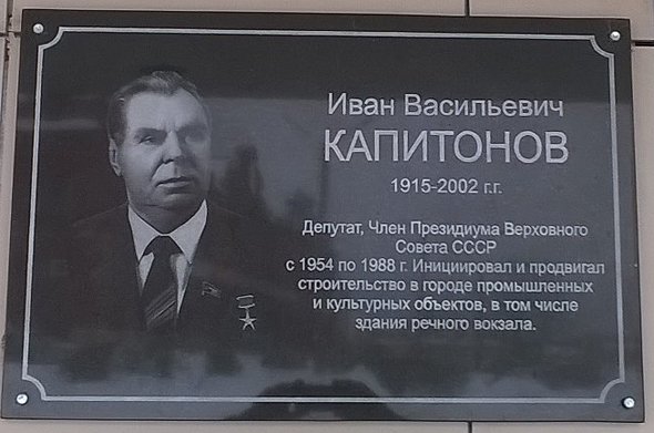 На здании речного вокзала в городе Кинешма Ивановской области установлена мемориальная доска.