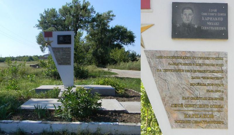 За отвагу и героизм, проявленные в бою с врагом, сержант* 1-й батареи 844-го артиллерийского полка 303-й стрелковой дивизии Михаил Севастьянович Карнаков был посмертно удостоен звания Героя Советского Союза. В память о бесстрашном воине одна из улиц поселка Коротыч названа его именем.»