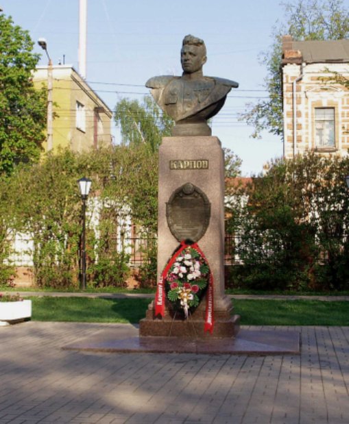 Бронзовый бюст дважды Героя Советского Союза Карпова А.Т. установлен в городе Калуге, где ежегодно в октябре проводятся Дни его памяти, и где его имя носит профессиональное училище №1. Его имя носит улица в Калуге, на которой установлена мемориальная доска.