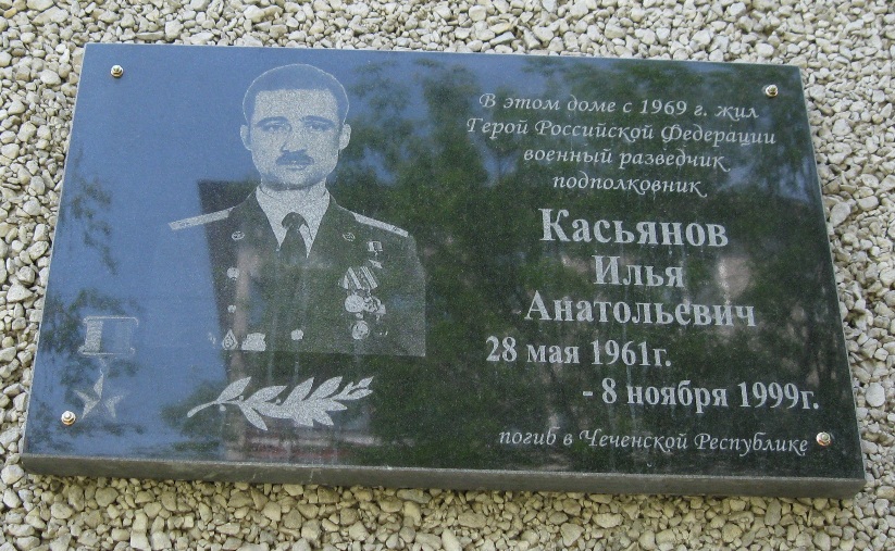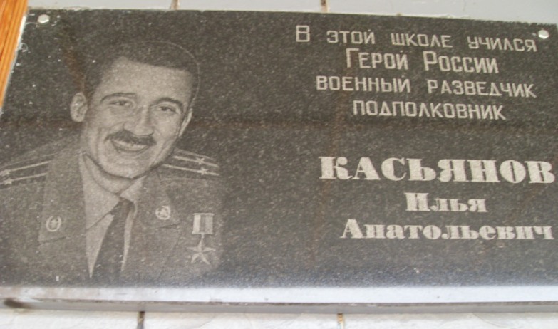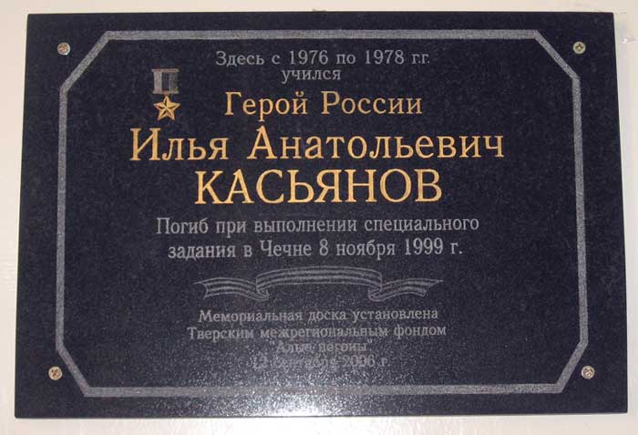 Установлена в городе Дзержинск Нижегородской области на фасаде школы №14, в которой учился И.А.Касьянов. Фото Сергея Кузоватова, 2.04.2010.