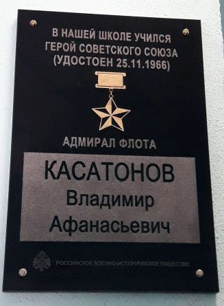 За большой вклад в повышение боевой готовности ВМФ, испытания новых кораблей и проявленные при этом мужество и героизм Указом Президиума Верховного Совета СССР от 25 ноября 1966 года адмиралу флота Касатонову Владимиру Афанасьевичу присвоено звание Героя Советского Союза с вручением ордена Ленина и медали «Золотая Звезда».