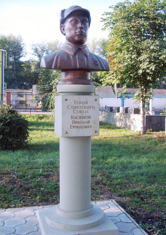 Бюст Н.Е.Касимова установлен на Аллее Героев в посёлке Панино Воронежской области. На здании Воронежского авиазавода (ныне Воронежское акционерное самолётостроительное общество) установлена мемориальная доска. ---------------------------------------------------------------- Примечание. В двухтомнике /1/ указано, что Герой похоронен в городе Губин. Однако в документах госпиталя ХППГ 4200 имеется запись о том, что он похоронен в городе Зоммерфельд (Любско), могила № 9.