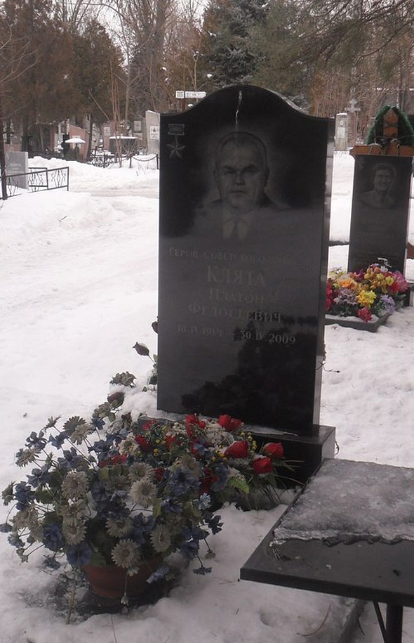 Клята Платон Федосеевич – командир эскадрильи 6-го гвардейского Брянского авиационного полка (6-я гвардейская Сталинградская авиационная дивизия, 1-й гвардейский Смоленский авиационный корпус, Авиация дальнего действия), гвардии майор.