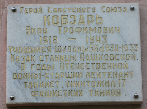 На личном боевом счету старшего лейтенанта Якова Кобзаря четыре тяжёлых и более десяти средних танков, штурмовое орудие и свыше пятидесяти вражеских солдат и офицеров.